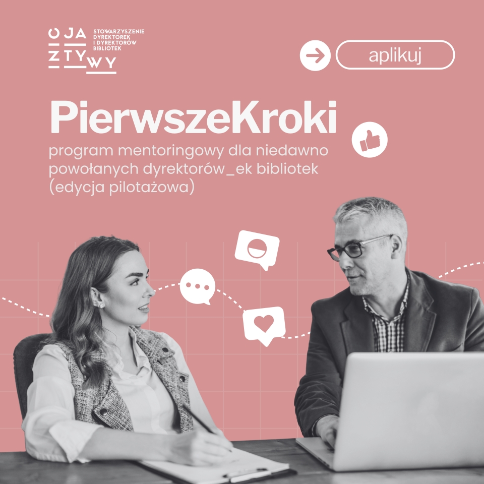 Stowarzyszenie Dyrektorek i Dyrektorów Bibliotek INICJATYWY ogłasza rozpoczęcie naboru do pilotażowej edycji programu mentoringowego „PierwszeKroki”, skierowanego do osób niedawno powołanych na stanowiska kierownicze w bibliotekach publicznych.