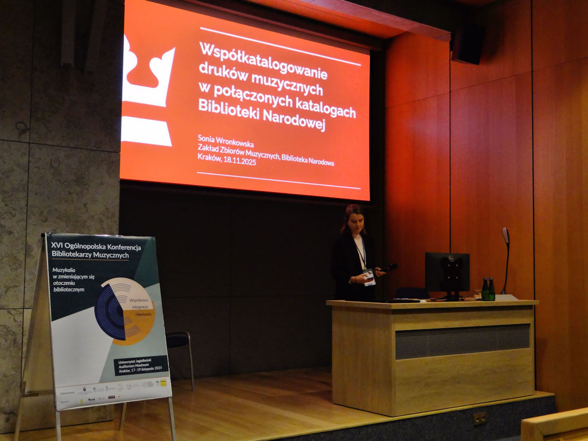 W dniach 17–19 listopada 2025 roku w Auditorium Maximum Uniwersytetu Jagiellońskiego odbyła się 16. Ogólnopolska Konferencja Bibliotekarzy Muzycznych zatytułowana „Muzykalia w zmieniającym się otoczeniu bibliotecznym – integracja, współpraca, harmonia”.